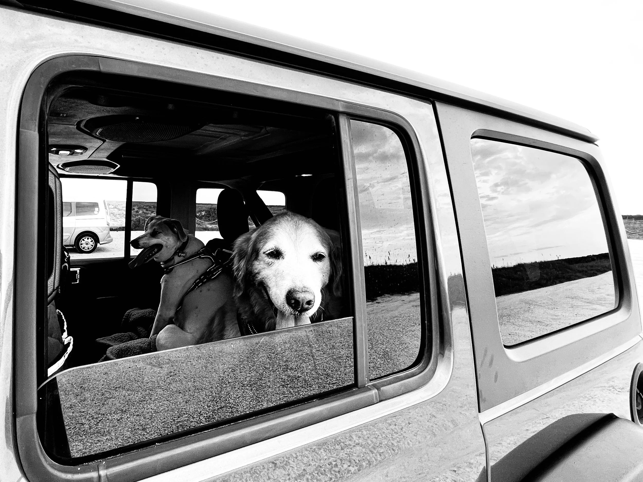 A year ago today… looking quite like a clown car circus show… three confused and car sick dogs, one human on the verge of a nervous break down, and one very pissed off cat stumbled out of a Subaru Forester and into a new life.